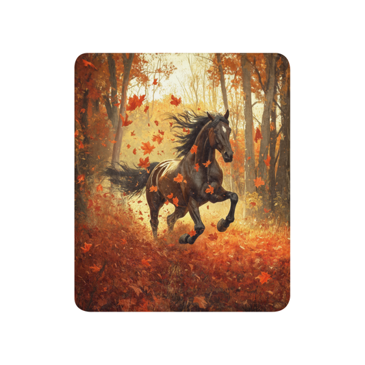 Blanket Black Horse Galloping - Autumn foliage colors