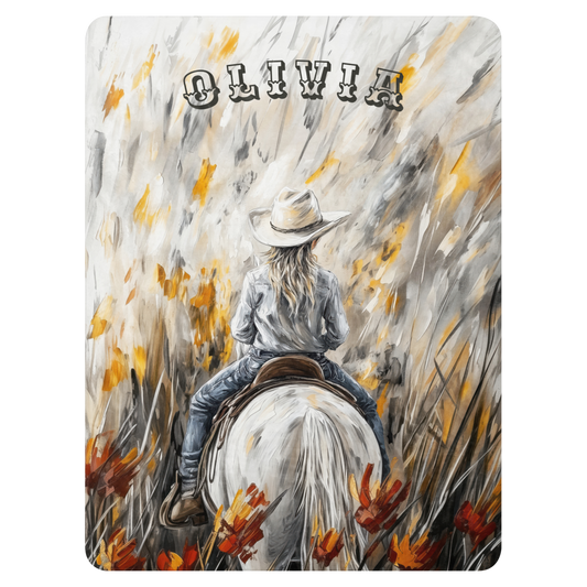 Personalized Western Cowgirl Blanket - Stunning Wildflower Horse Art