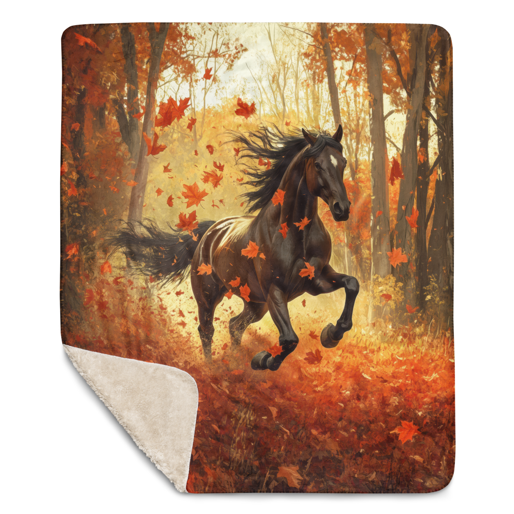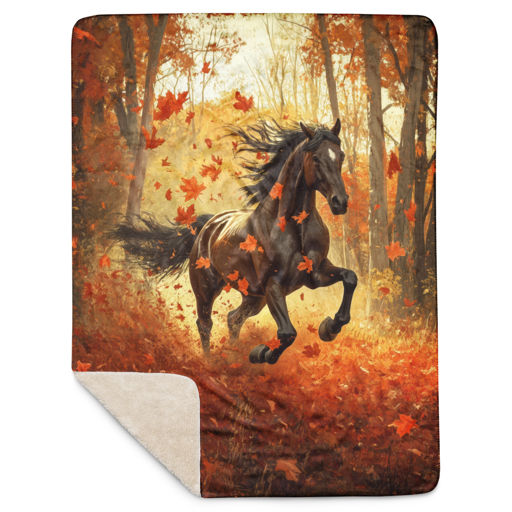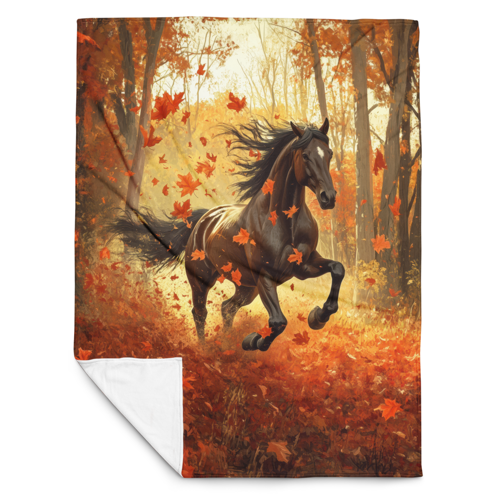 Blanket Black Horse Galloping - Autumn foliage colors