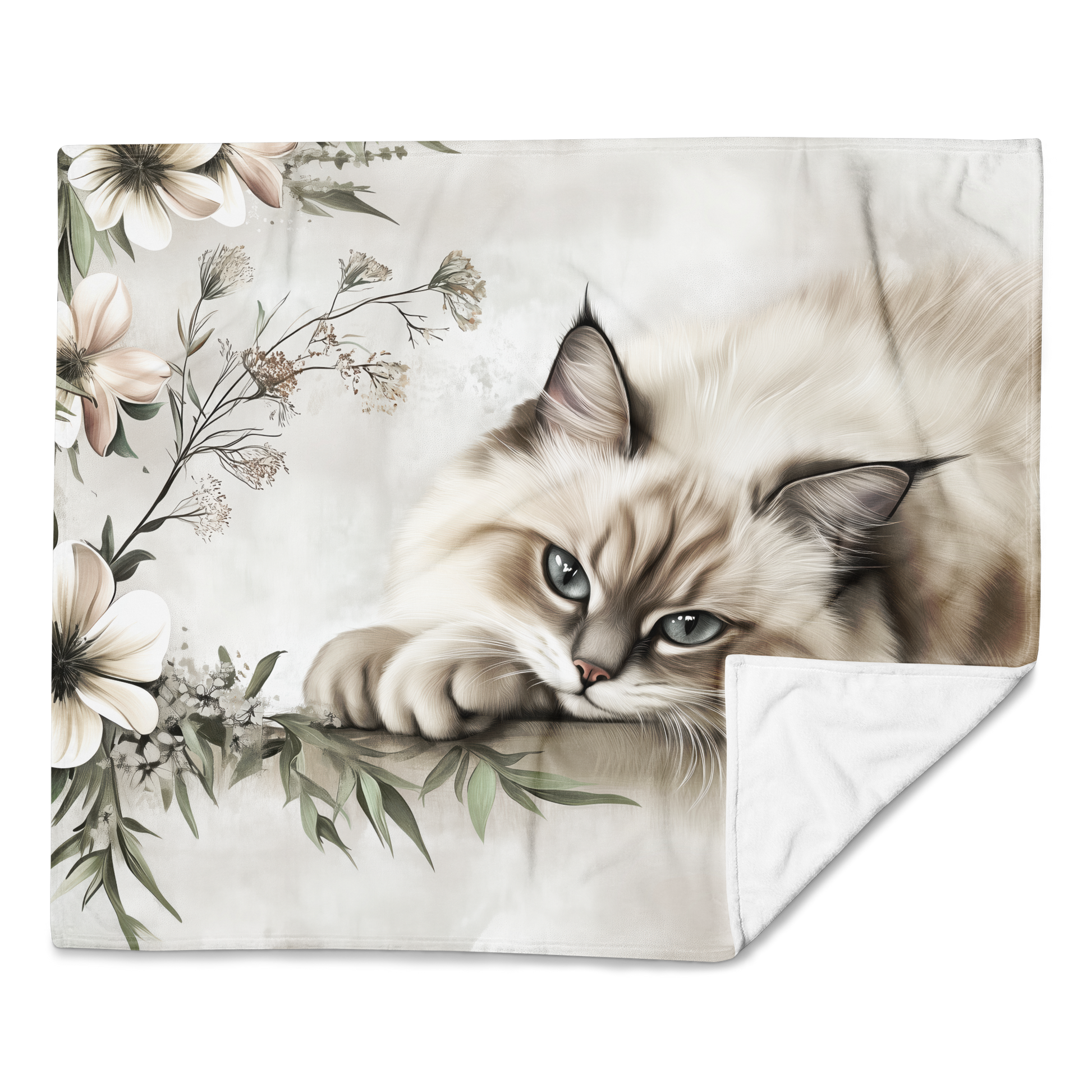 Personalized Throw Blanket - Elegant Fluffy Ragdoll Cat